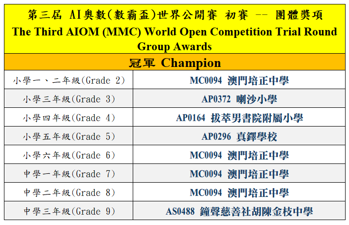第三屆AI奧數(數霸盃)世界公開賽 成績公佈